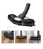 Dankzij het TriActive-mondstuk kunt u de vloer in 1 keer op 3 manieren reinigen: 1) De grotere opening aan het uiteinde van het mondstuk zuigt grotere objecten eenvoudig op. 2) De optimale luchtstroom in het mondstuk zorgt voor een maximaal reinigingsresultaat. 3) De twee zijborstels vegen het stof en vuil op naast het meubilair en de muren.